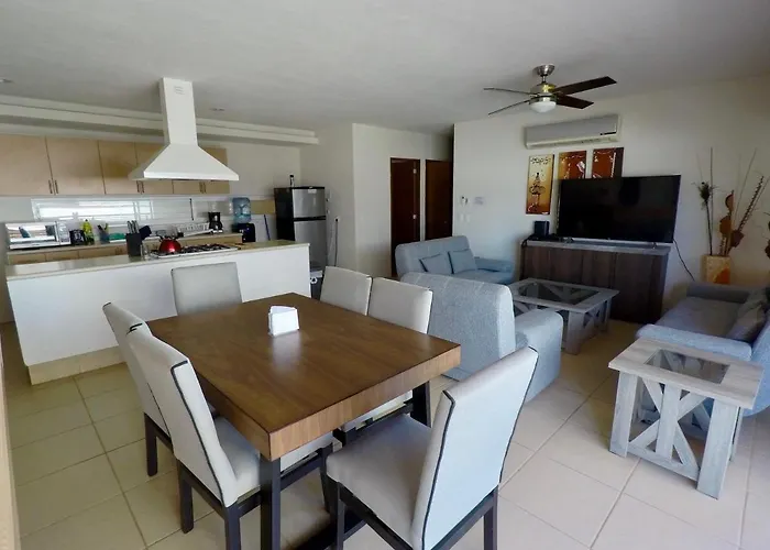 Offering an outdoor swimming pool, the spacious 140 m² 3 Bedroom Apartment At La Joya Hotel Zone is situated at a distance of 2.8 km from Cuale Island. The 2-bedroom apartment is located in the Las Glorias-North Hotel district, a 10-minute drive from Lic. Gustavo Diaz Ordaz airport.